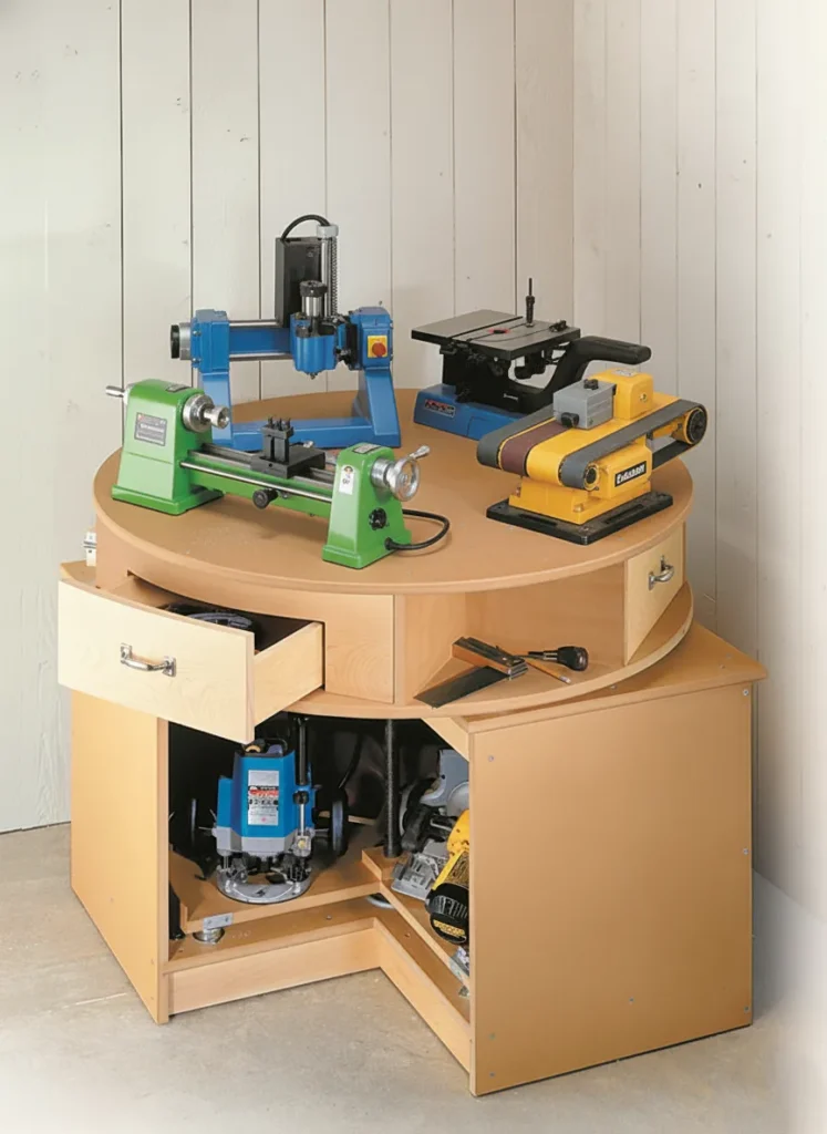 The first thing I built was a small rotating drawer system for my tools — something I’d failed at twice before. This time, it turned out perfect.
